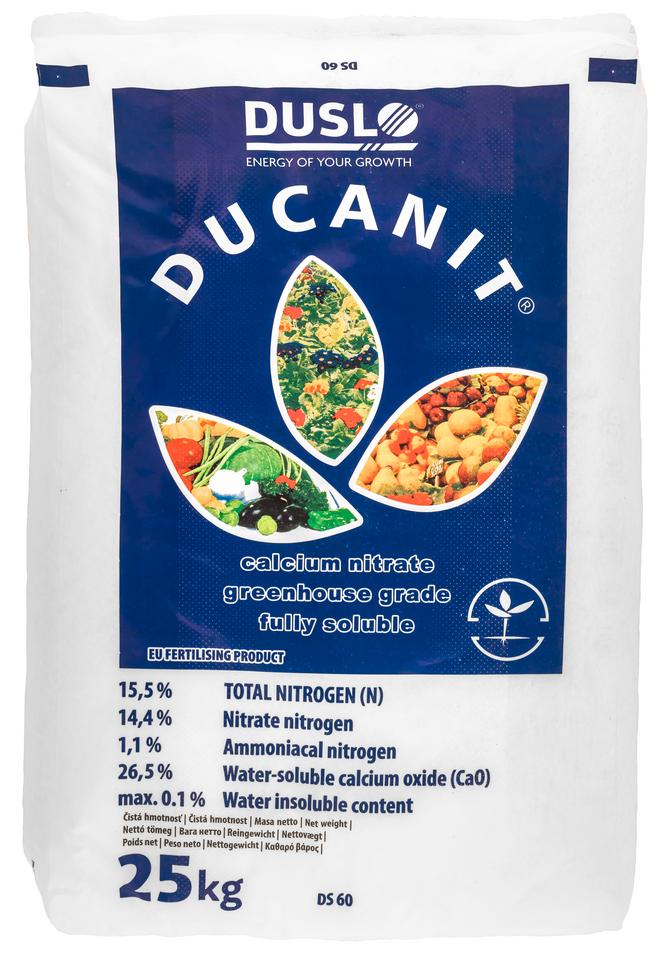 Ducanit je granulované, plne vodorozpustné hnojivo typu dusičnan vápenatý. Obsahuje rýchlo prijateľný dusičnanový dusík a vápnik, ktoré sú okamžite dostupné pre rastliny. Produkt je určený na prípravu živných roztokov pre kvapkovú závlahu (fertigáciu), hydropóniu a na listovú (foliárnu) aplikáciu v poľnohospodárstve a záhradníctve.