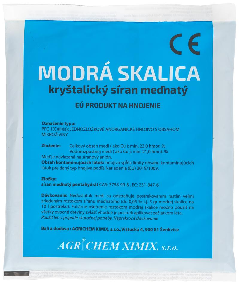 Modrá skalica (síran meďnatý) 0,5 kg je kryštalické hnojivo určené na doplnenie medi (Cu), ktorej nedostatok spôsobuje odumieranie mladých listov a metlovitosť. V kombinácii s vápnom (Bordeauská zmes) slúži ako tradičný fungicíd proti peronospóre viniča. Je tiež účinným prostriedkom proti riasam v bazénoch.