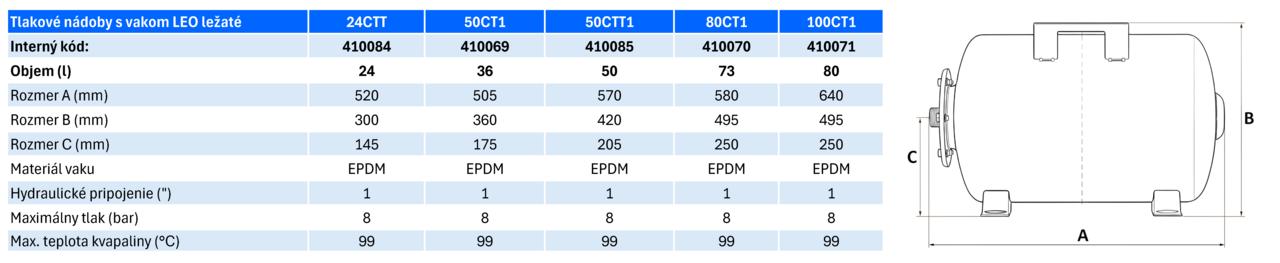 Ležatá tlaková nádoba LEO 50CT1 (36 l) pre domáce vodárne