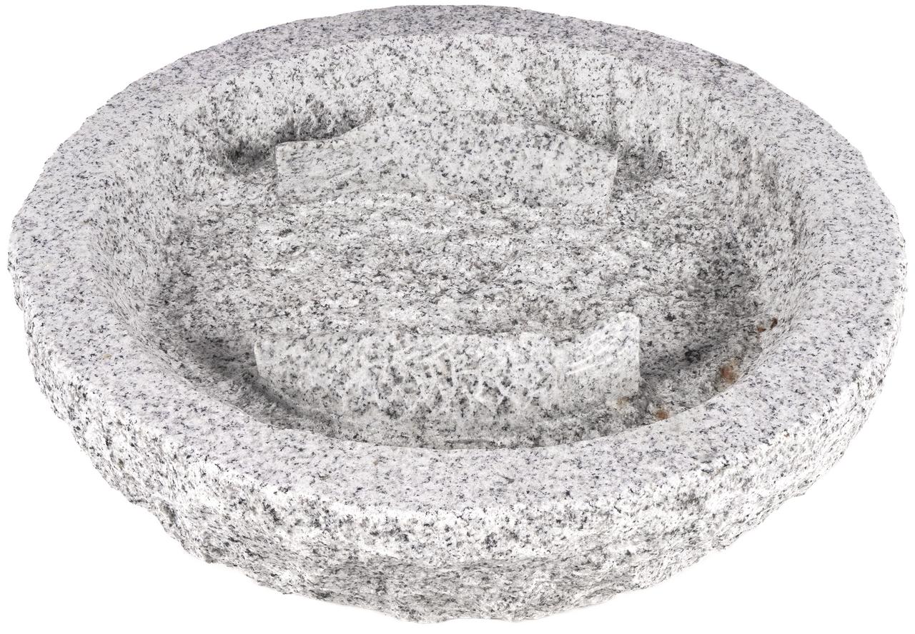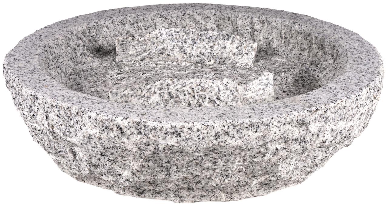 Toto kamenné napájadlo s priemerom 40 cm je ručne vytesané z masívnej žuly a zaujme hravým motívom dvoch rýb na okraji misy. Čistý kruhový tvar v spojení s prirodzenou textúrou kameňa dodáva napájadlu estetický vzhľad, ktorý dokonale ladí s okolím jazierok či terás. Vďaka poctivej váhe kameňa je napájadlo maximálne stabilné a plne odolné voči mrazu, čo zaručuje jeho dlhú životnosť v exteriéri.