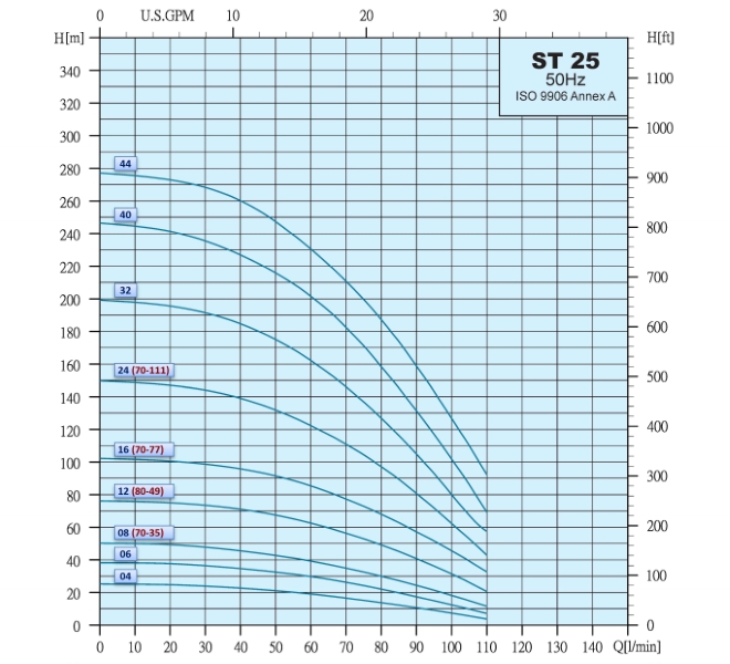 - Maximálny výtlak: 51 m